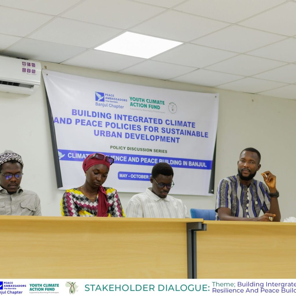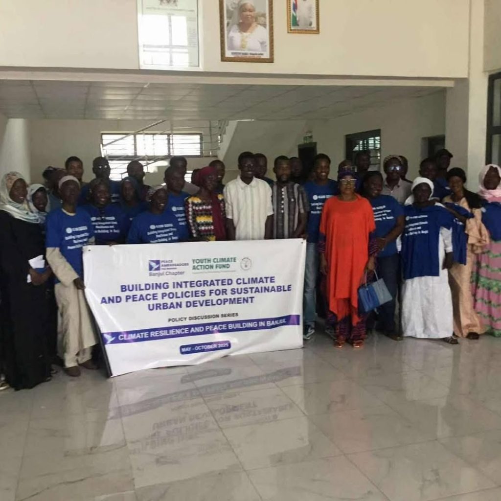 ECOLUM, under the leadership of its Executive Director, Hon. Abdoulie Njai, together with other executive members Mr. Yusupha Cham (project coordinator) and Mr. Amadou Wurry Jallow (head of communications )actively participated in a high-level dialogue on โ€œBuilding Integrated Climate Resilience and Peace Policies for Sustainable Urban Development.โ€ The event, hosted by Peace Ambassadors โ€“ The Gambia (Banjul Chapter), brought together diverse stakeholders, including women, youth, policymakers, and civil society actors, to discuss urgent strategies for safeguarding communities against the twin challenges of climate change and conflict.